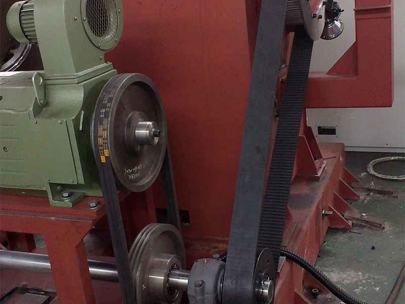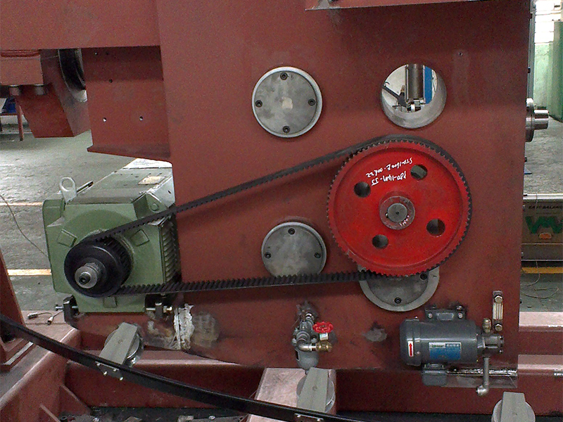 3. 同步傳動(dòng)系統(tǒng) : a. 由主馬達(dá)以V 型皮帶傳動(dòng)傳動(dòng)軸. b. 傳動(dòng)軸兩端以齒形皮帶輪與兩主軸之齒型皮帶輪用齒形皮帶同步傳動(dòng).