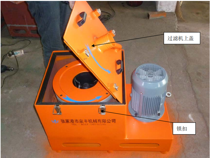 1.打開下圖所指示的鎖扣即可打開過濾機(jī)上蓋。