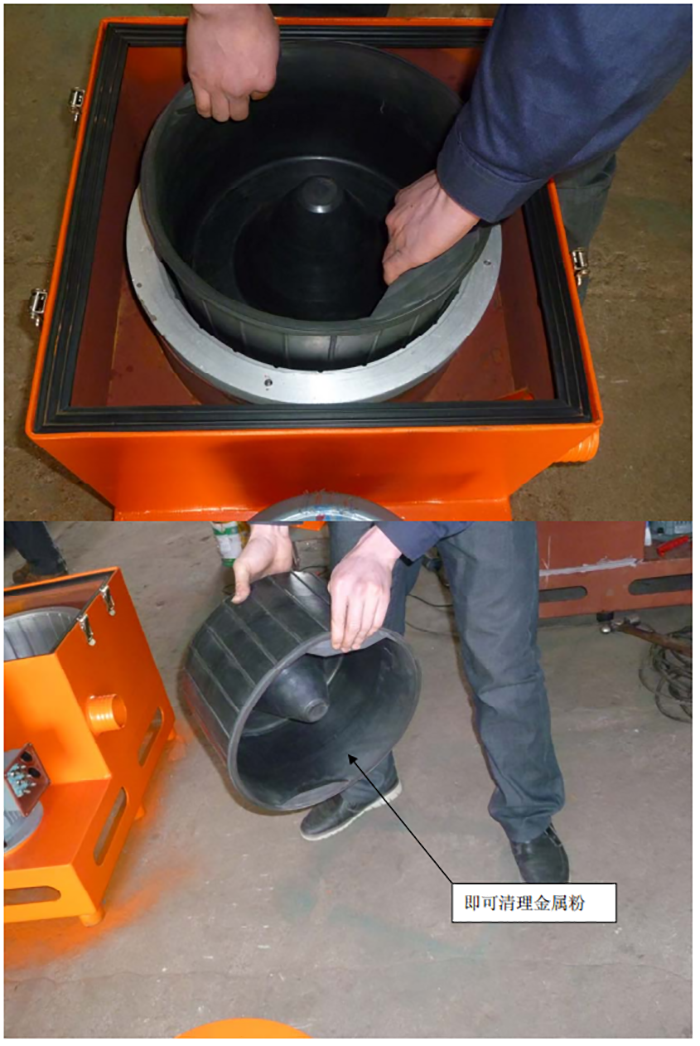 3.如下圖所示提出橡膠桶即可清理出過濾出來的金屬粉